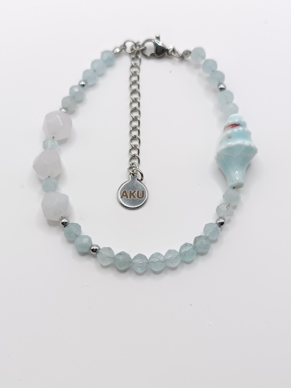 Akwamaryn przywodzi na myśl spokojne fale i lekkość nadmorskiego wiatru. Ręcznie wykonana, z dbałością o każdy kamień, bransoletka łączy naturalny urok kamieni z subtelną elegancją.