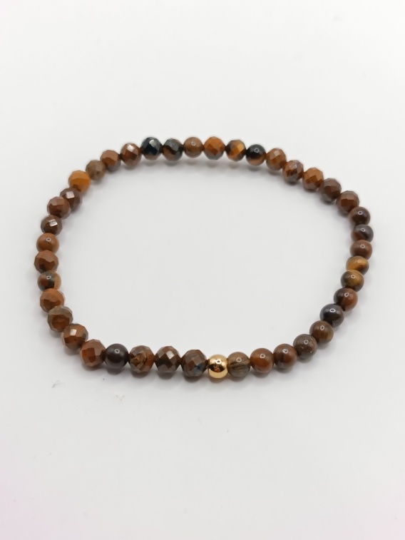 Bransoletka z małych kamieni tygrysiego oka z jedną, złotą kuleczką w roli akcentu. Prosta, ale ma w sobie siłę — idealna dla tych, którzy lubią minimalizm z energią.