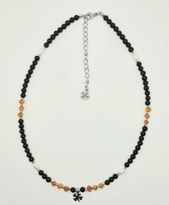 Naszyjnik 'morska ochrona' z czarnego turmalinu, bursztynów i pereł