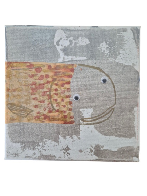 „Rybka” to pełen wdzięku i zabawnego charakteru obraz ukazujący rybę o wyrazistych, wypukłych oczach, które nadają pracy wyjątkowej osobowości. Delikatne linie, ciekawa stylizacja oraz akcenty kolorystyczne podkreślają ilustracyjny, lekko bajkowy styl obrazu. Dzięki swojej figlarnej formie dzieło rozświetla przestrzeń i wywołuje uśmiech, jednocześnie zachowując artystyczną spójność.